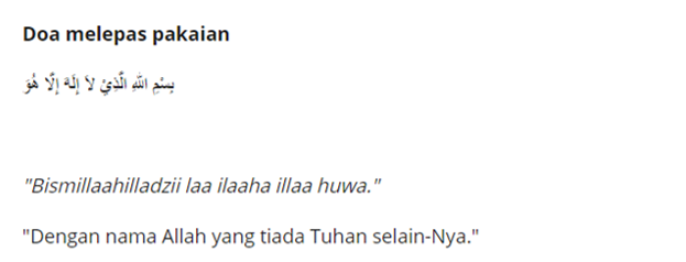 Nah, jika pada awal Anda sudah mengetahui dan menghafal , maka di bawah ini adalah bacaan doa melepas pakaian.